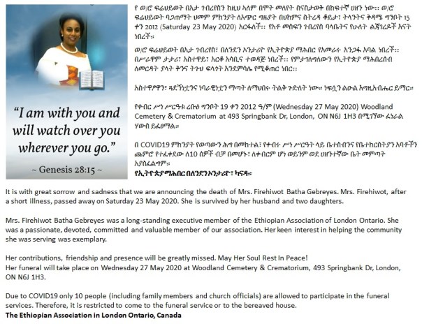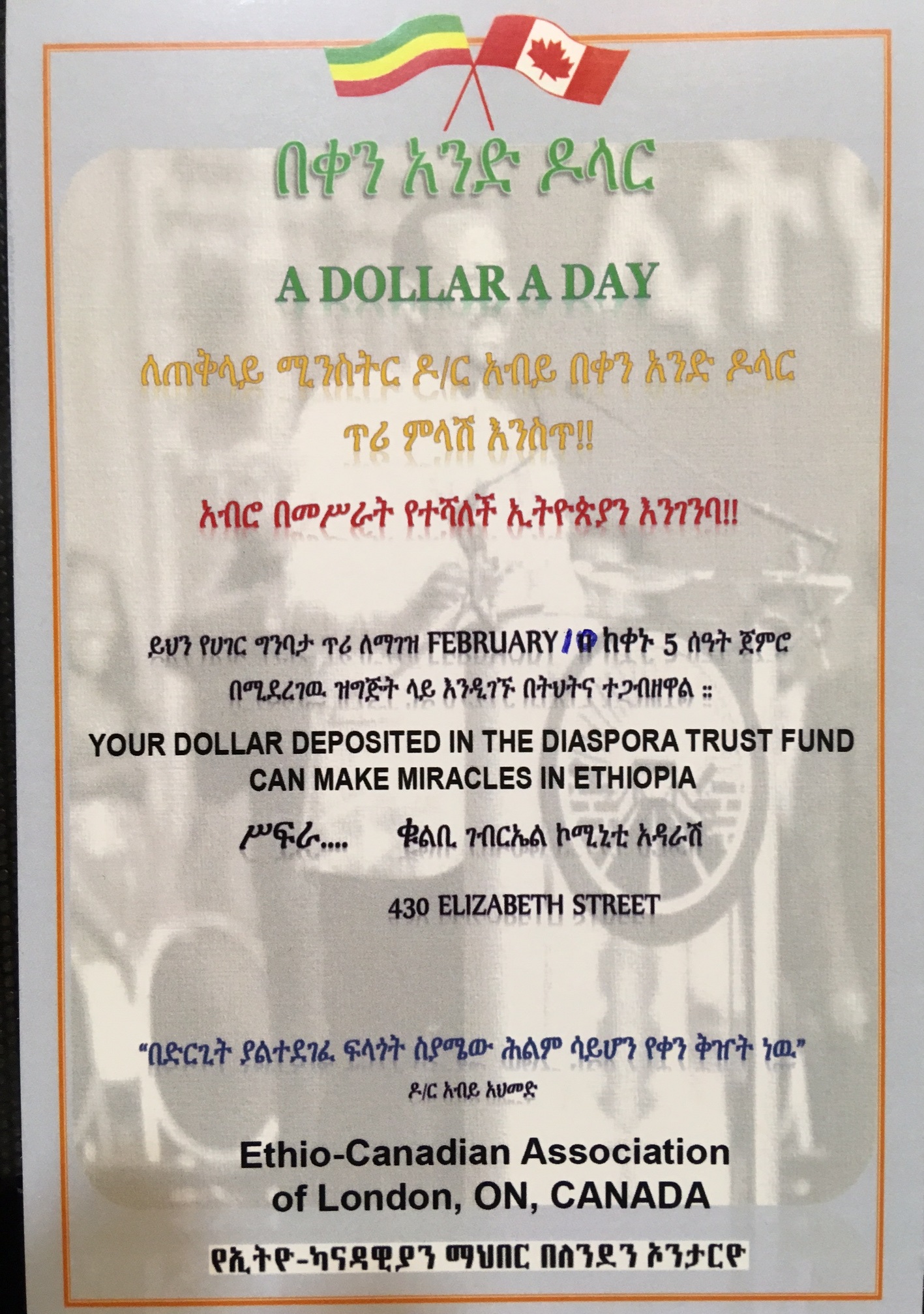 ይህ ድርጊት፣ ባለፈውም፣ አሁንም፣ ወደፊትም በለንደን ኦንታሪዮ የሚኖረው የኢትዮጵያ ኮሚኒቲ፣ ለወገን ደራሽነቱን ያረጋግጣል። እናመሰግናለን።